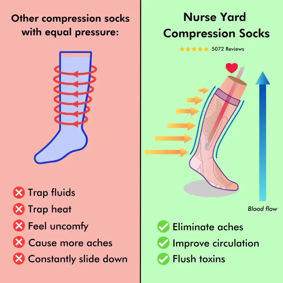 Unlike ordinary socks that offer minimal support, Nurse Yard's revolutionary 3-Zone Targeted Compression Technology delivers: